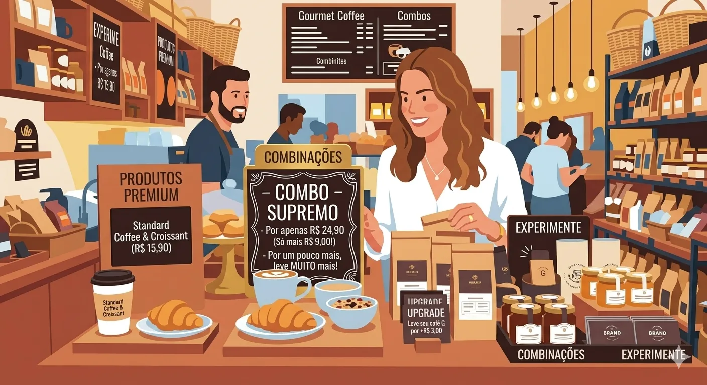 Upsell é oferecer uma versão superior do que o cliente já decidiu comprar. Não é empurrar — é mostrar que existe uma opção melhor e deixar o cliente escolher.
