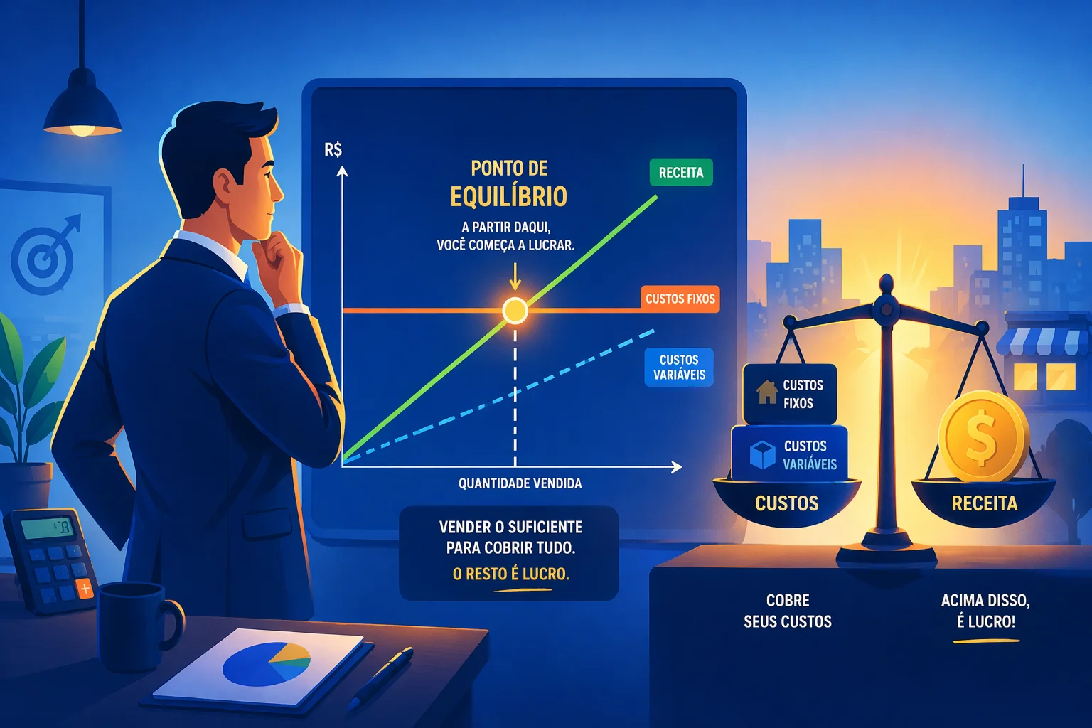 Sem saber seu ponto de equilíbrio, você pode vender muito, trabalhar muito e não sobrar nada. Aprenda a calcular em menos de 10 minutos — com exemplos reais e a conta completa.