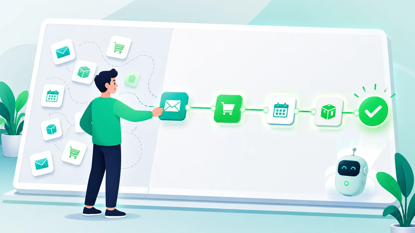 Automação de tarefas é a conexão entre ferramentas que você já usa: quando acontece X em um lugar, o sistema faz Y em outro. Sem código, sem programador, sem complexidade técnica.