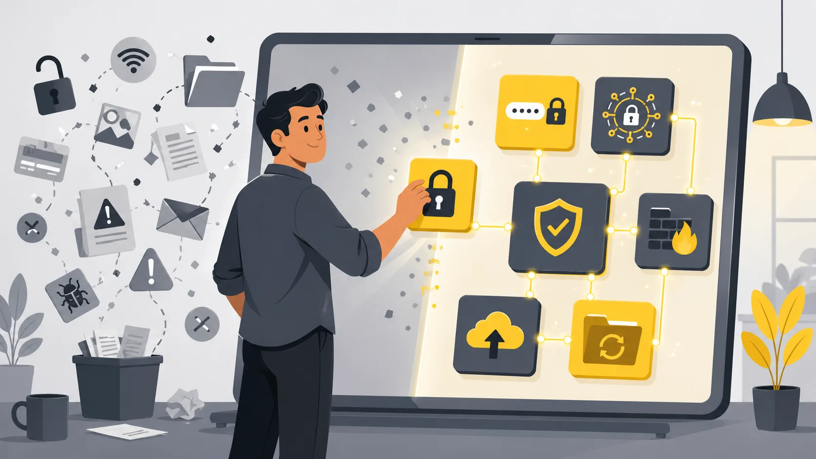Comece pelo mais crítico: se você ainda não usa gerenciador de senhas e não tem backup automático funcionando, resolva isso hoje. São duas horas de trabalho que podem evitar semanas de prejuízo.